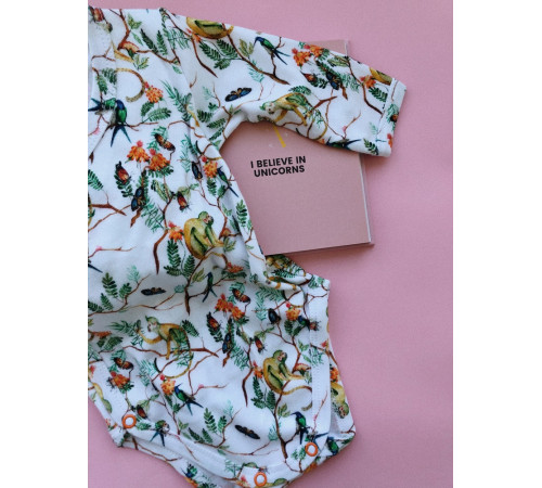 Наявні розміри 0-1 міс, 1-3 місВиготовлений з органічного бавовни екстра класу - Supima Cotton, який вирощений в Південній Америці без застосування хімічних добрив, токсичних речовин і має всі сертифікати якості. Характеризується більшою довжиною волокна, що робить тканину дуже міцною і приємною на дотик.