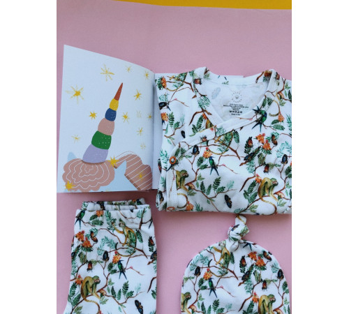 Наявні розміри 0-1 міс, 1-3 міс, 3-6 місВиготовлений з органічного бавовни екстра класу - Supima Cotton, який вирощений в Південній Америці без застосування хімічних добрив, токсичних речовин і має всі сертифікати якості. Характеризується більшою довжиною волокна, що робить тканину дуже міцною і приємною на дотик.