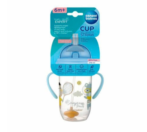 Canpol babies Кружка непроливайка з трубочкою і обтяжувачем 270 мл BONJOUR PARIS - синя Нова кружка непроливайка від Canpol babies з трубочкою і обтяжувачем підтримує правильний розвиток ротової порожнини, мови та прикусу у 99% дітей*. Це ідеальний вибір для дітей, які починають навчатися самостійному питтю. Підходить для дітей від 6 місяців! Унікальна силіконова трубочка з обтяжувачем стежить за рідиною, завдяки чому дитина може пити до останньої краплі, незалежно від кута нахилу кружечки. Спеціальна мембрана в трубочці пропускає рідину в соломинку тільки тоді, коли дитина п’є, таким чином запобігає розливанню, а сучасна кришка дозволяє легко і зручно приховати трубочку і гарантує 100% герметичність без протікання! Кружка оснащена зручними широкими ручками, які дозволяють легко тримати чашку в крихітних руках. Вона буде ідеальною вдома, під час подорожі та на прогулянці. * За результатами опитування, проведеного неврологами та логопедами у групі з 44 дітей віком 6-36 місяців.