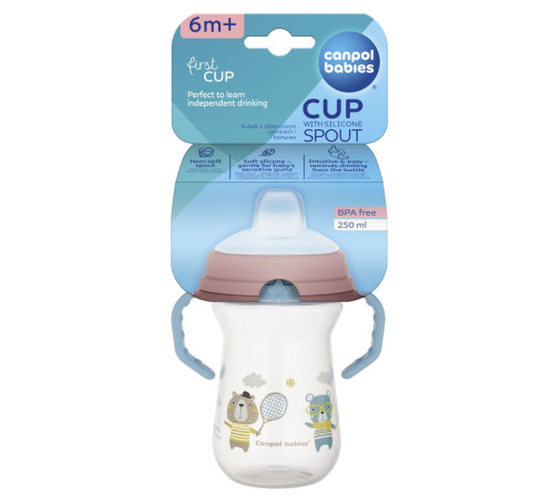 Canpol babies Кружка тренувальна з силіконовим носиком FirstCup 250 мл BONJOUR PARIS - рожева