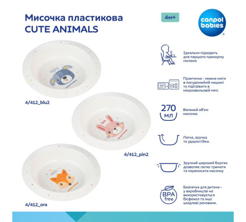 Canpol babies Мисочка пластикова CUTE ANIMALS - рожева