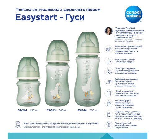 Canpol babies Пляшка антиколікова з широким отвором Easystart Гуси - найкраща перша пляшечка малюка!