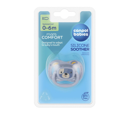 Canpol babies Пустушка силіконова симетрична 0-6 міс CUTE ANIMALS - блакитний
