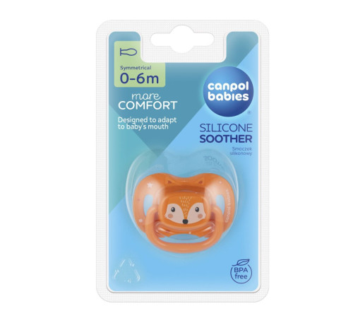 Canpol babies Пустушка силіконова симетрична 0-6 міс CUTE ANIMALS - помаранчева