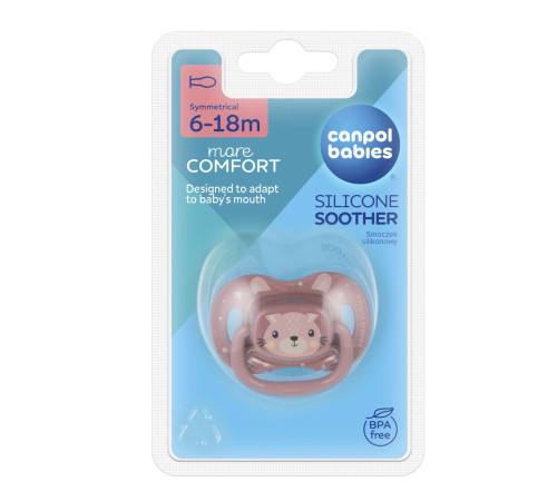 Canpol babies Пустушка силіконова симетрична 6-18 міс CUTE ANIMALS - рожева