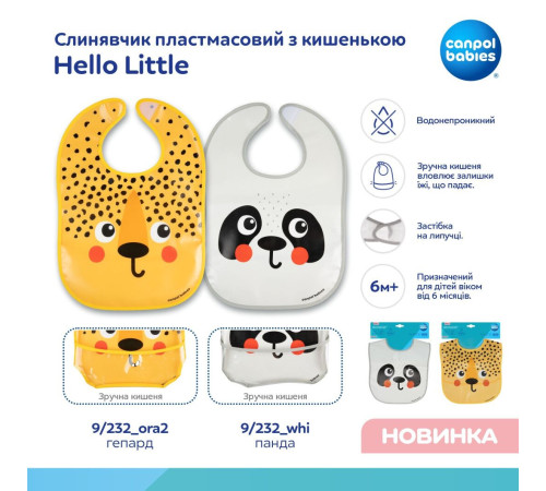 малюка від забруднення та намокання під час їжі. Практична кишенька, що