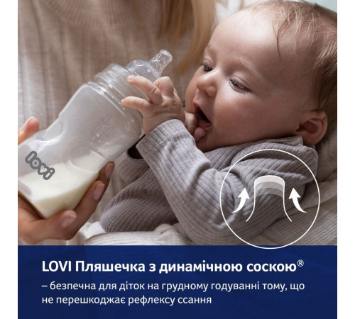 LOVI Пляшечка Trends - безпечна для діток на грудному годуванні тому, що не перешкоджає рефлексу ссання.