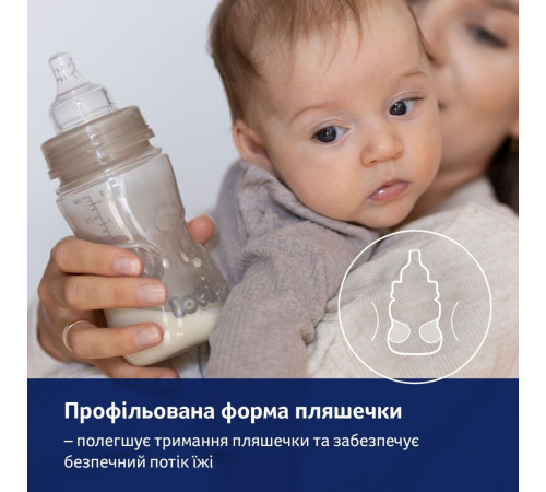 Профільована форма пляшечки - полегшує тримання пляшечки та забезпечує безпечний потік їжі
