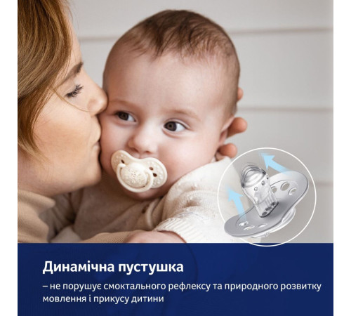 Захищає смоктальний рефлекс - динамічна соска розтягується і стискається ураз з смоктальними рухами дитини