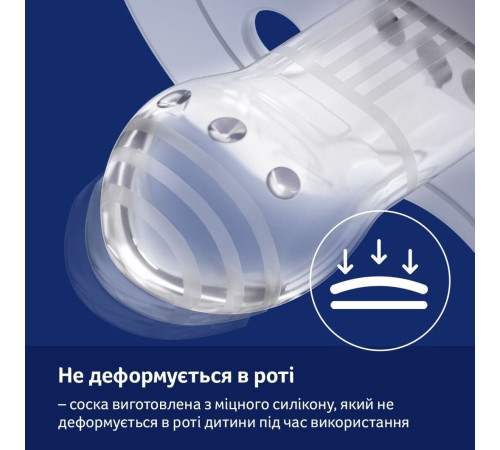 Не деформується в роті - соска виготовлена з міцного силікону, який не деформується в роті дитини під час використання