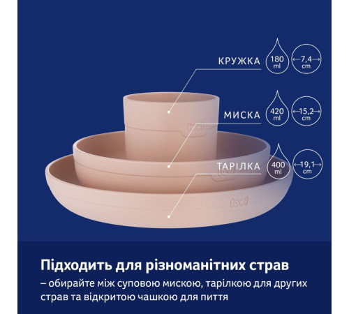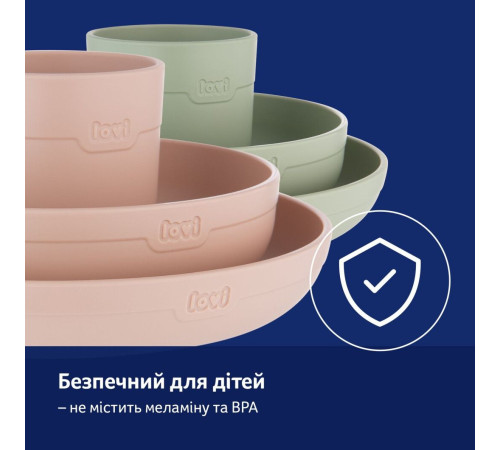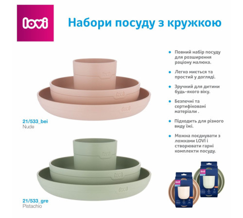 посуду LOVI складається з миски, тарілки та стаканчика - все, що потрібно для