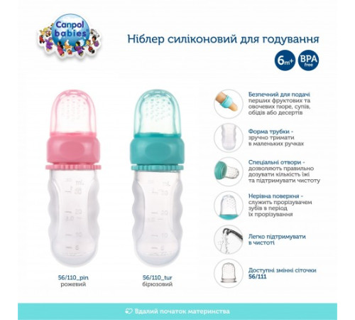 Силіконовий ніблер для годування від Canpol babies ідеальний при розширенні раціону малюка. Безпечно давати дитині перші фруктові та овочеві пюре, супи, обіди або десерти. Форма трубочки та можливість дозування їжі розвивають самостійність та дозволяютьзручно тримати в маленьких ручках. Їжа не витікає сама по собі, що дозволяє правильно дозувати кількість їжі та підтримувати чистоту.