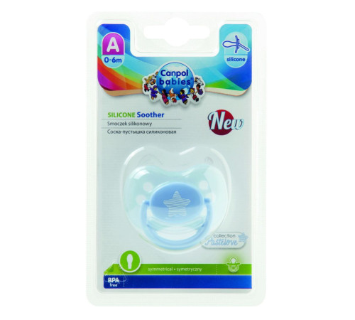Пустушка силіконова кругла Pastelove від Canpol babies виготовлена ??з якісного силікону і призначена для дітей від 0 місяців. Пустушка оснащена міцною силіконовою соскою круглої форми, яка не має смаку і запаху, легко миється і не темніє від сонячних променів. Основа пустушки має вентиляційні отвори, що запобігає подразненню шкіри дитини і не дозволяє накопичуватися слині.