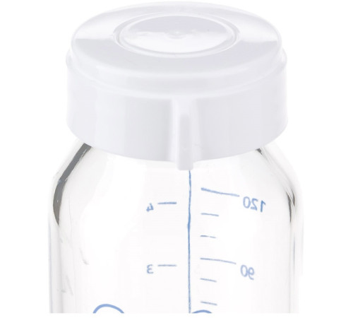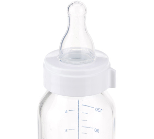 Пляшечка для годування виготовлена із загартованого, міцного, безпечного скла.Оснащена антиколіковою силіконовою соскою круглої форми повільного потоку для дітей від 3-х місяців.