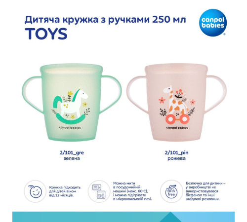 Дитяча кружка з ручками Canpol babies TOYS , 250 мл - рожева