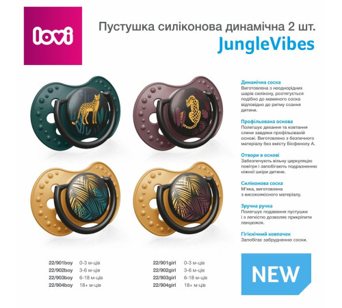Пустушка силіконова динамічна  Jungle Vibes від LOVI - це унікальний мінімалістичний дизайн відповідно до найновіших трендів. Створена фахівцями та лікарями з метою розвитку здорового інстинкту смоктання.