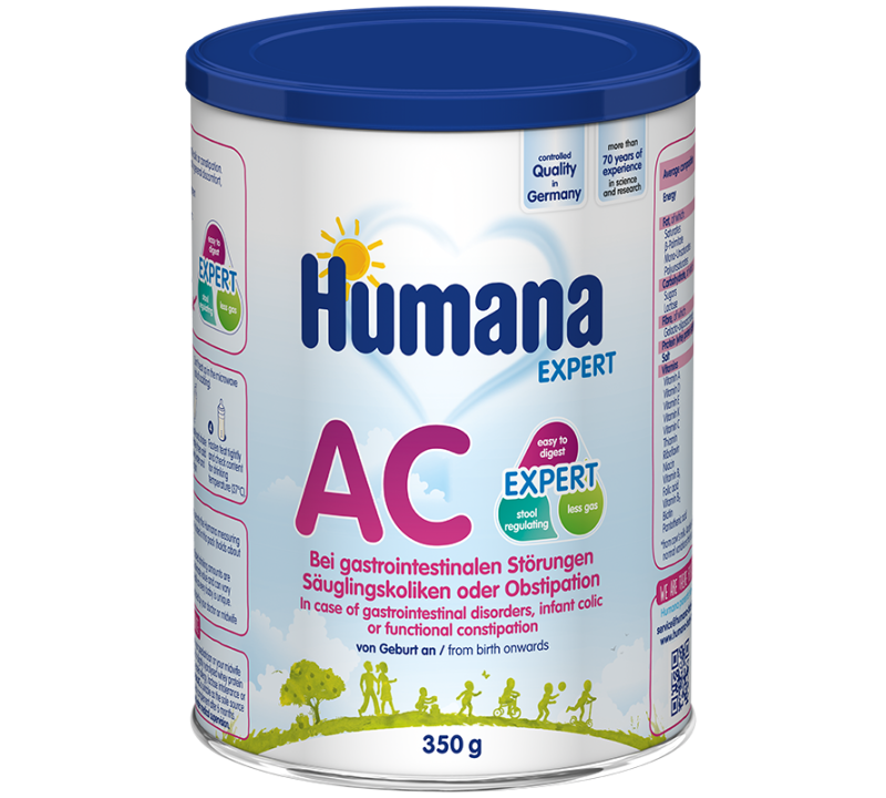 - При функціональних розладах шлунково-кишкового тракту Humana AC вводиться швидко